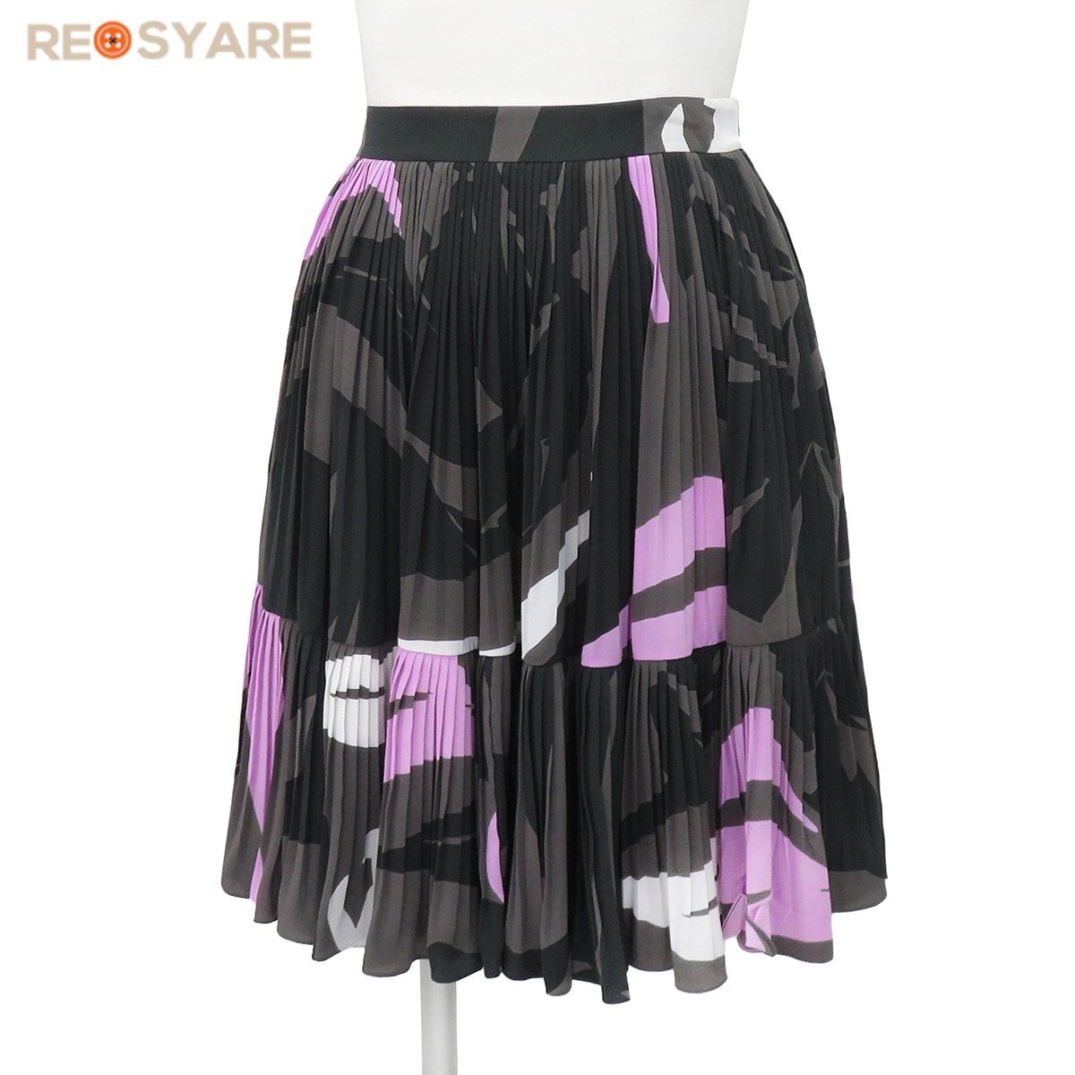 > 極美品 クリスチャン ディオール 6C21337A1670 総柄 マルチカラー プリント プリーツ ミニ スカート 47022
