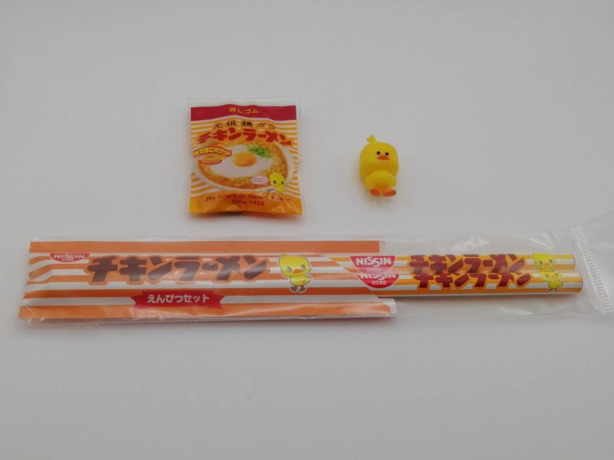 - チキンラーメン 鉛筆 消しゴム ひよこちゃんフィギュア