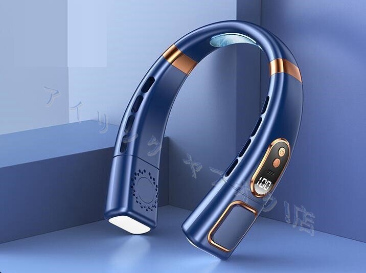 > ☆新品ネッククーラー首掛け扇風機 4000mAh 5段階風量 静音 軽量 最大6時間動作 USB充電 冷却プレート1秒で冷やす 強力 冷感 ブルー
