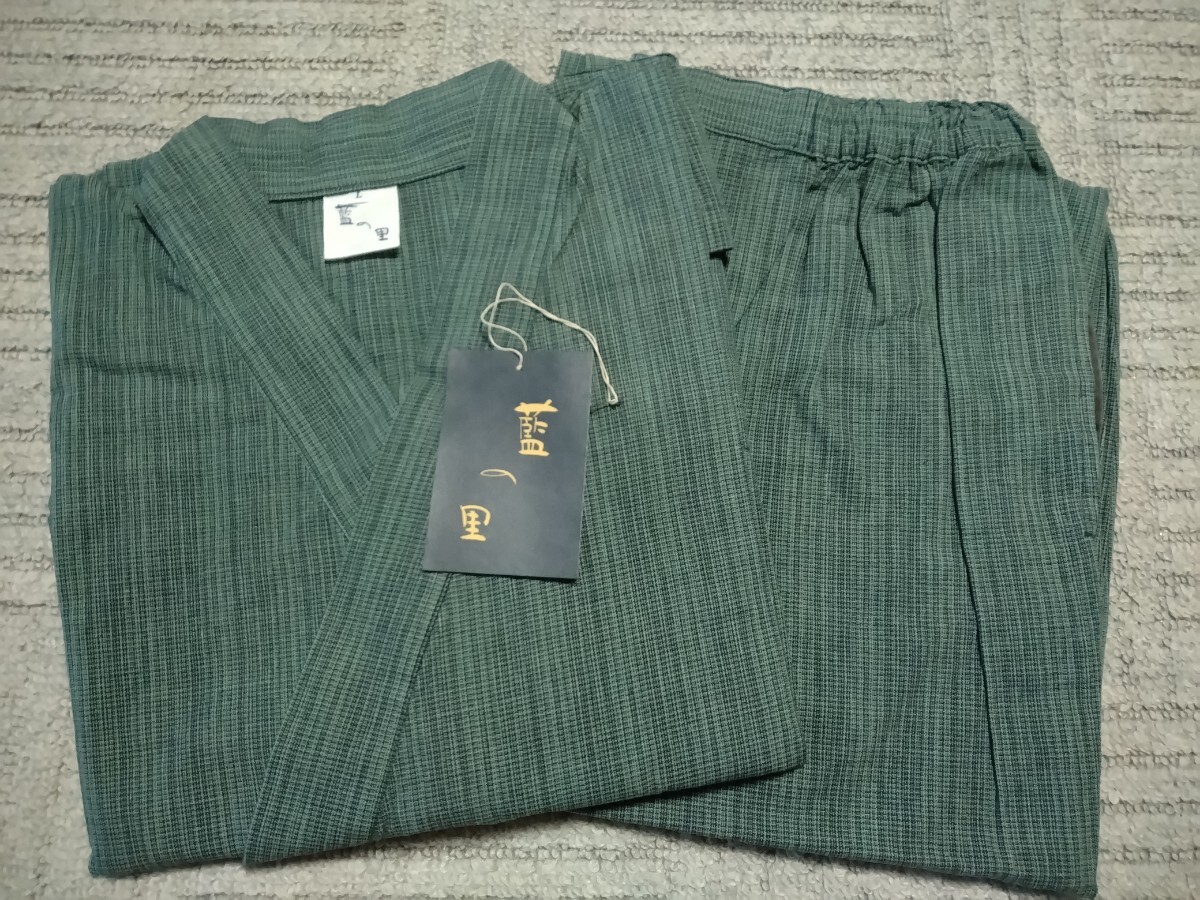 - 産地 岡山 井原 日本製 藍の里 作務衣 上下セット サイズL 最高級 和装 和服 甚平 法衣 袈裟 仏教 装束 仏具 威儀 職人 倉敷 780D