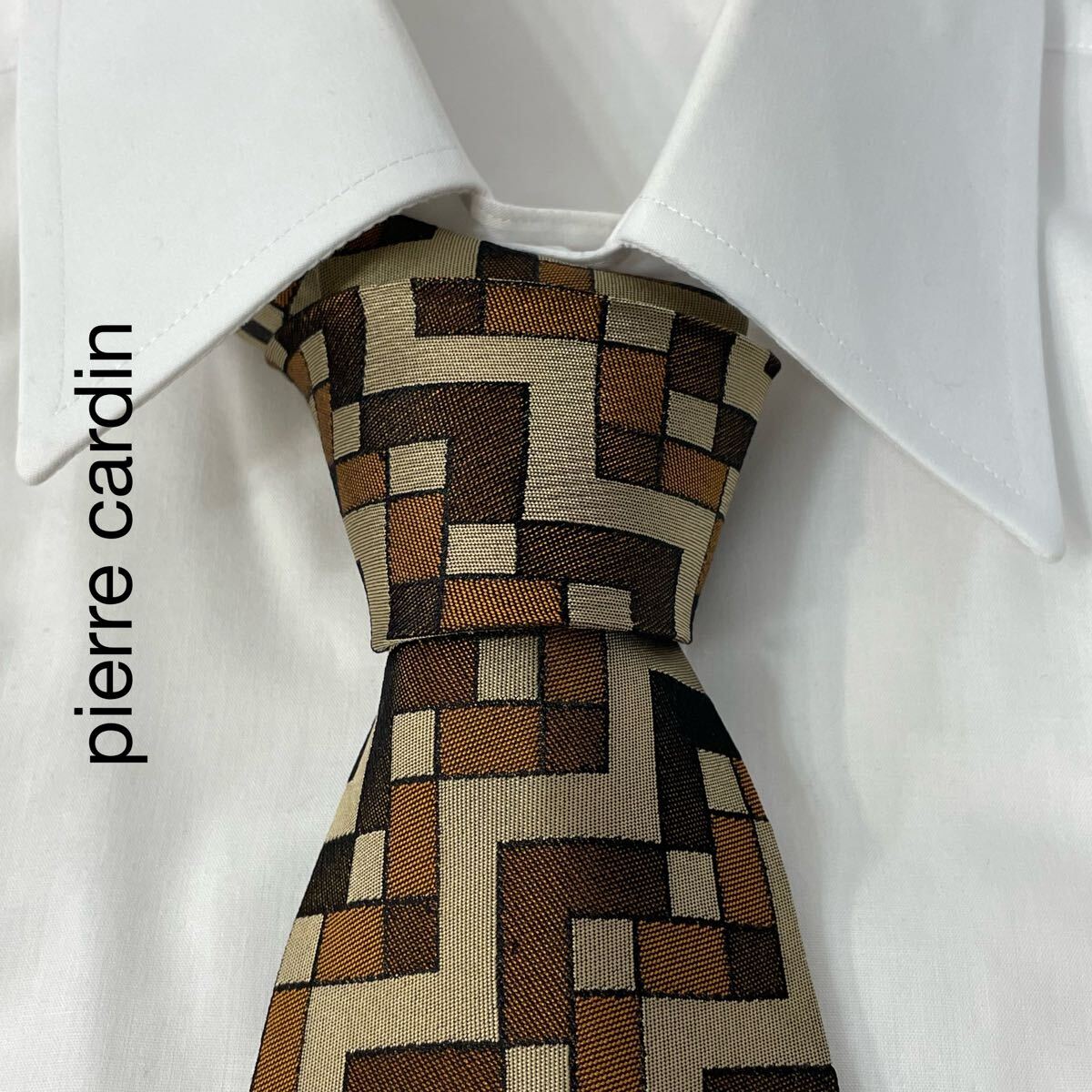 - pierre cardin ピエールカルダン パターン柄 ジャガード デザイン シルク ネクタイ ブラウン TG444