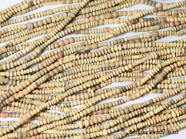 ◆コメント◆ 西アフリカのマリでハンドメイドで作られる土の素焼きのビーズの一連です。エスニック風アクセサリー等の製作にぴったりです。粒の大きさ、形状に若干のばらつきがあります。多くの粒が2~4個繋がっている連粒です。写真はサンプルですが、ほぼ同様のお品をご用意しておます。1本単位の販売です。 ◇商品詳細◇ ■全長・・・・・・・・・約60cm(ビーズ部分のみ) ■粒のサイズ・・・2.0~10.0X3.0mm(平均的な粒の長さX直径) ■孔・・・・・・・・・・・約1.5mmmm ■材質・・・・・・・・・土 ■推測製作年代・・・・21世紀~ ■推測原産地・・・・・・・マリ(西アフリカ) ◆コンディション◆概ね良好 アンティークビーズ,とんぼ玉
