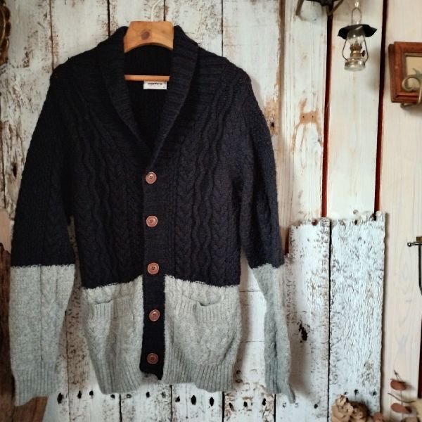 > SMITH'S AMERICAN スミス アメリカン 長袖 ショールカラー カーディガン メンズ M ブラック グレー 黒 古着 ヴィンテージ ビンテージ