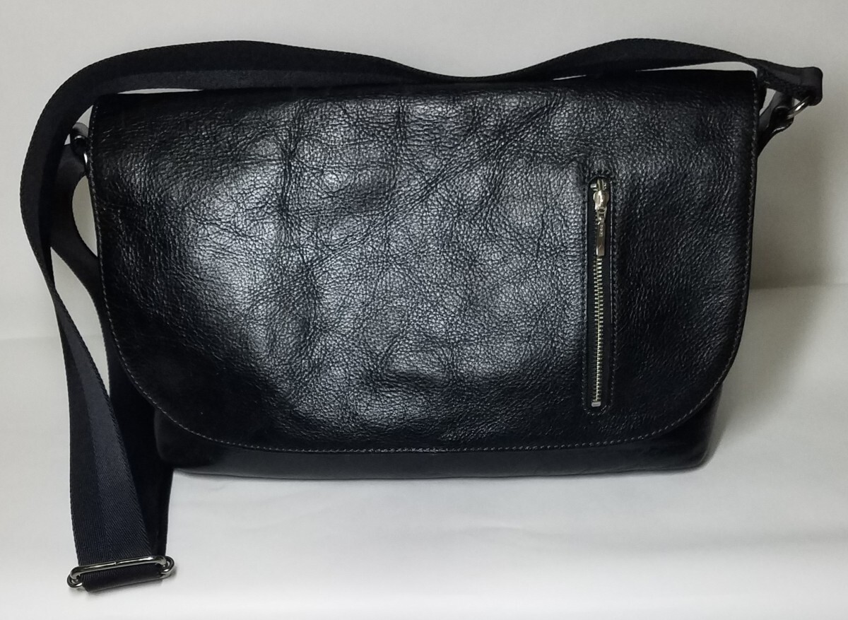 - 美品 本革 バッグ メンズ レザー 黒 斜め掛けショルダーバッグ 高級素材 一点物 ユニセックス 便利品 本革素材 日本製