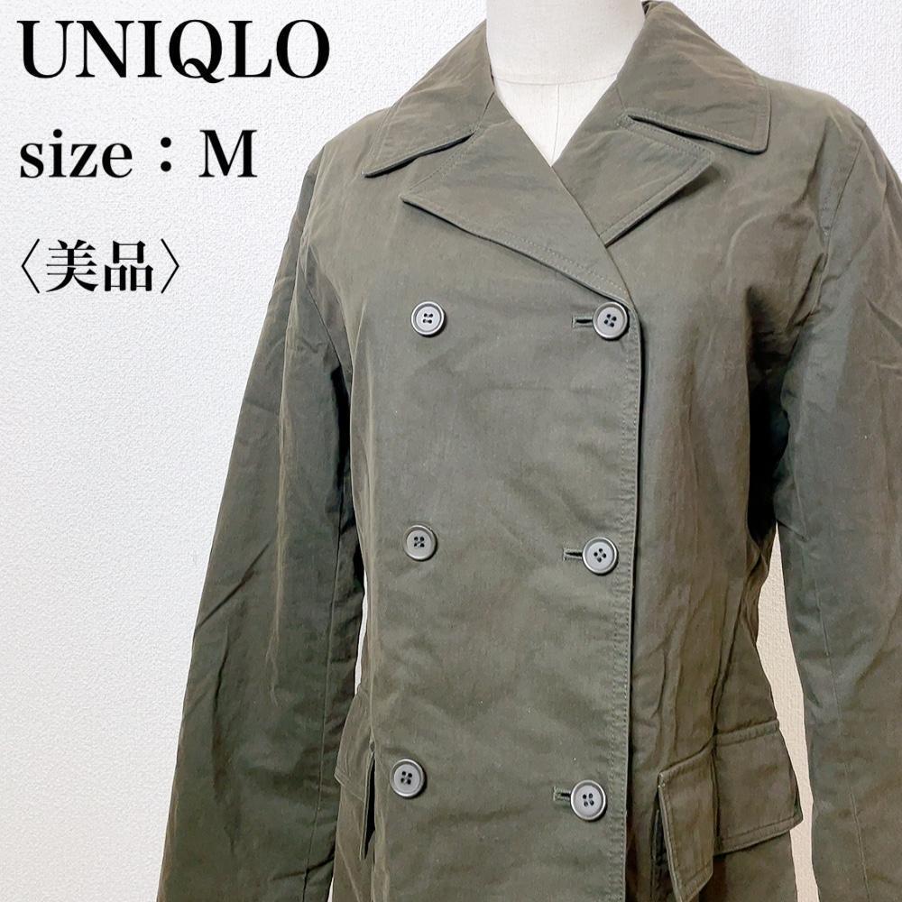 - 【美品】UNIQLO ユニクロ カジュアル キルティング ダブルブレスト ショート丈Pコート 羽織り シンプル 着回し抜群 グリーン カーキ ら40