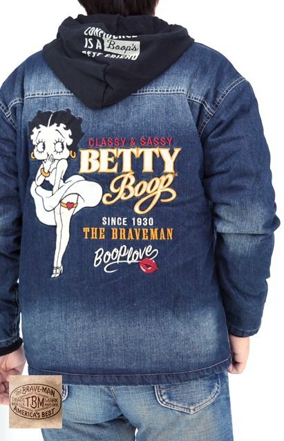 > BR×BETTYコラボ 裏毛フェイクレイヤードジャケット◆The BRAVE-MAN インディゴMサイズ BBB-2461 ブレイブマン ベティーちゃん 刺繍