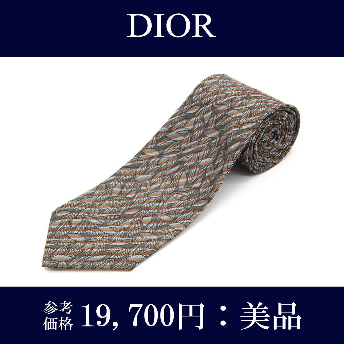 > 送料無料 ディオール ネクタイ ジャガードタイ シルク オレンジ 緑 グリーン 青 ライトブルー ビジネス ブランド 総柄 ストライプ 葉 N378