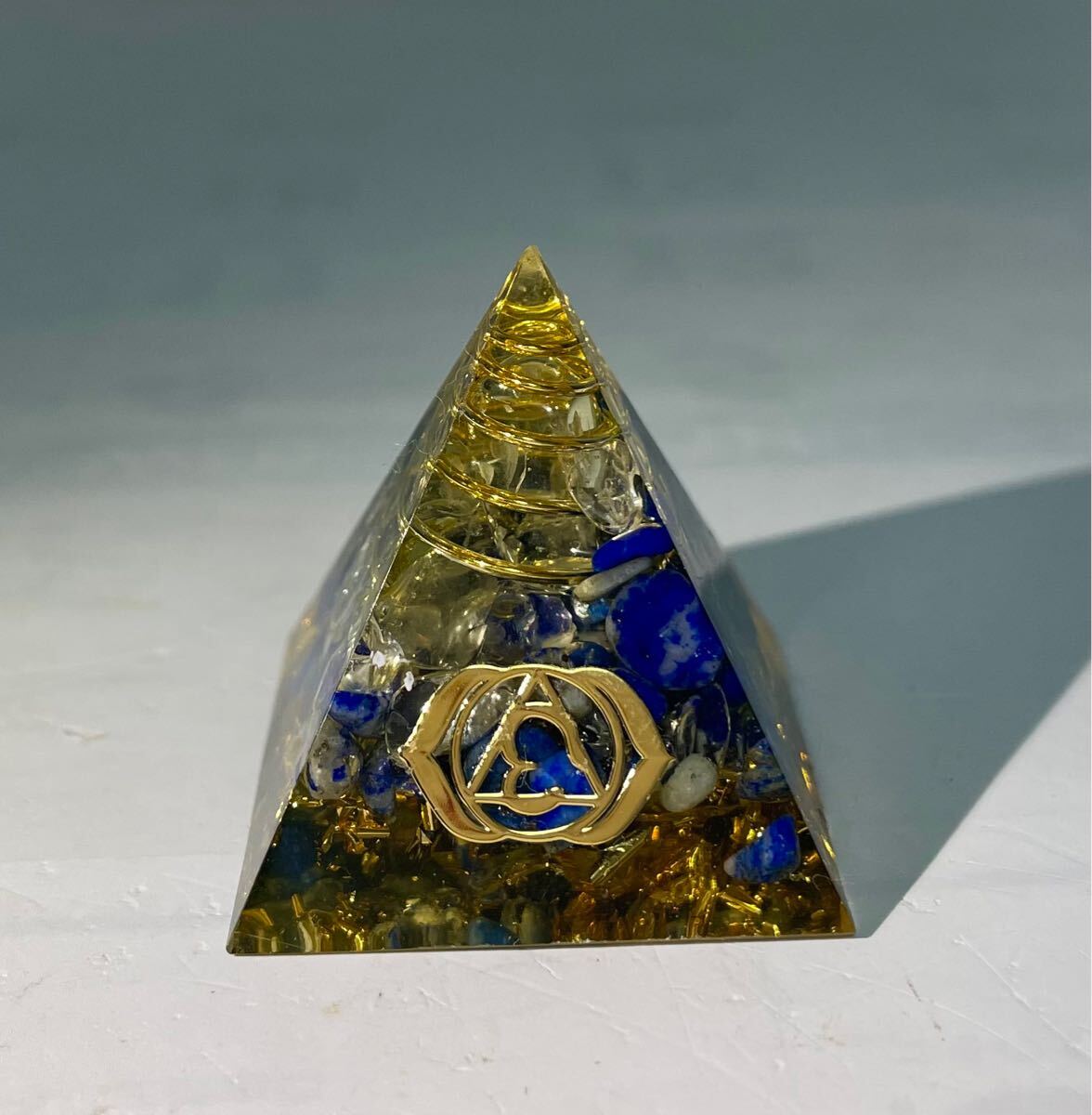 > オルゴナイト 青金石 ラピスラズリ ピラミッド 魔法陣 風水晶 浄化 天然石置物 魔除 お守 幸運 ラッキー ブルー