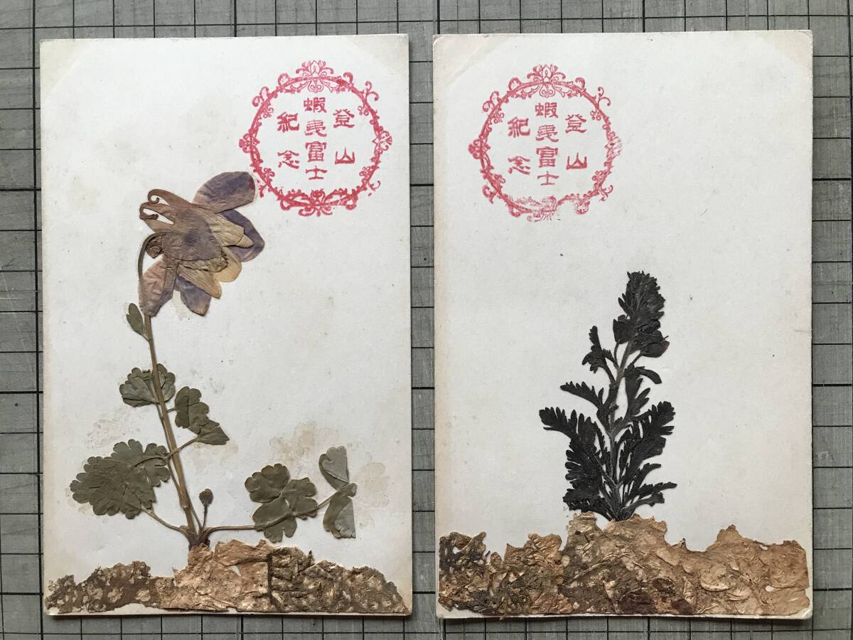 - 「絵葉書 蝦夷富士登山紀念 押し花 2枚組」ミヤマオダマキ・キクバクワガタの書き込みあり ※羊蹄山・標高1898m 北海道後志地方南部 00040