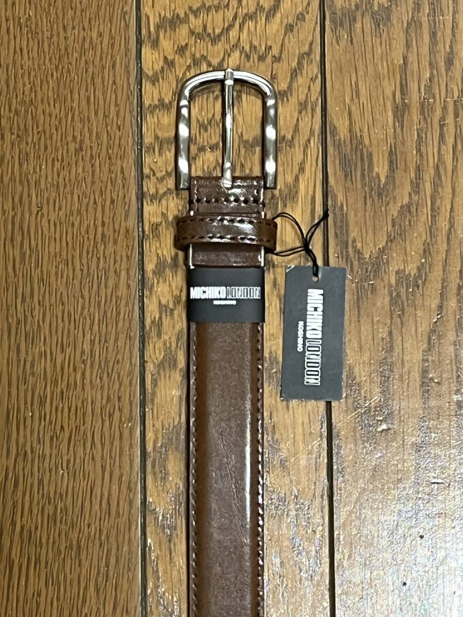 - 【質屋 尾張屋商店 東京】(4882)☆未使用/訳あり☆ ミチコロンドン ベルト 牛革 茶 101㎝