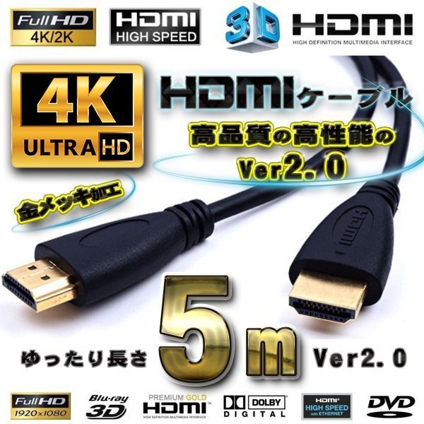 - HDMIケーブル 5m 4K 3D対応 Ver2.0 フルハイビジョン