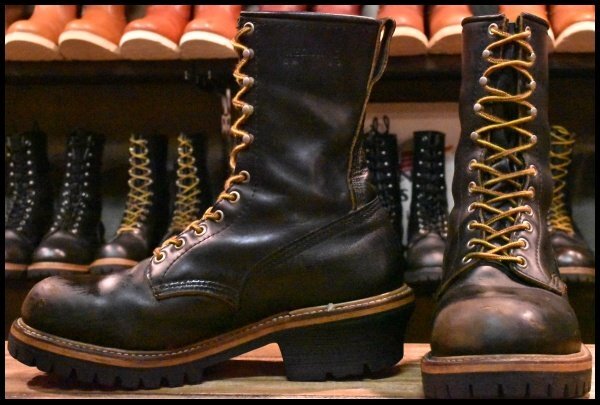 > 【8D 良品 PT91プリント 93年04月刻印】レッドウィング 2218 ロガー 黒 ブラッククローム スチールトゥ 9210 ブーツ redwing HOPESMORE