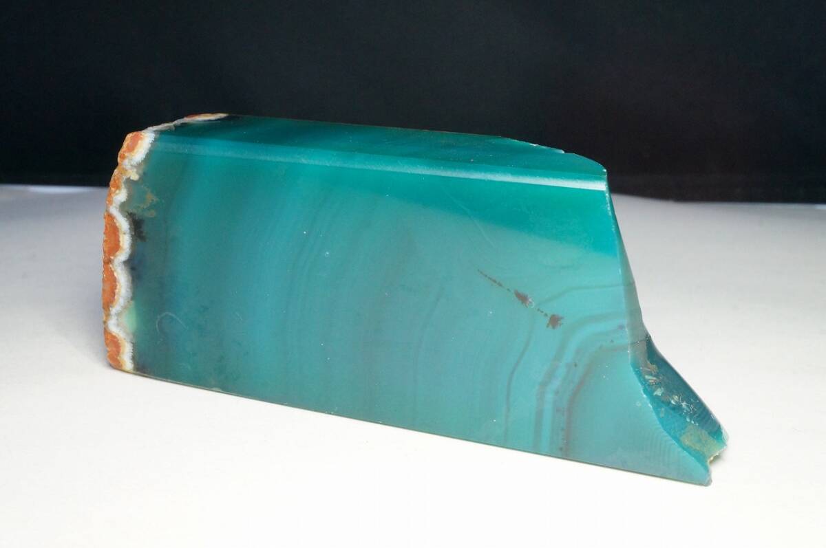- 希少!昔の在庫なので上質!縞模様が綺麗なブラジル産グリーン瑪瑙・メノウ・めのう・メノー・ピクチャーメノウ研磨原石118g【文鎮にも最適】