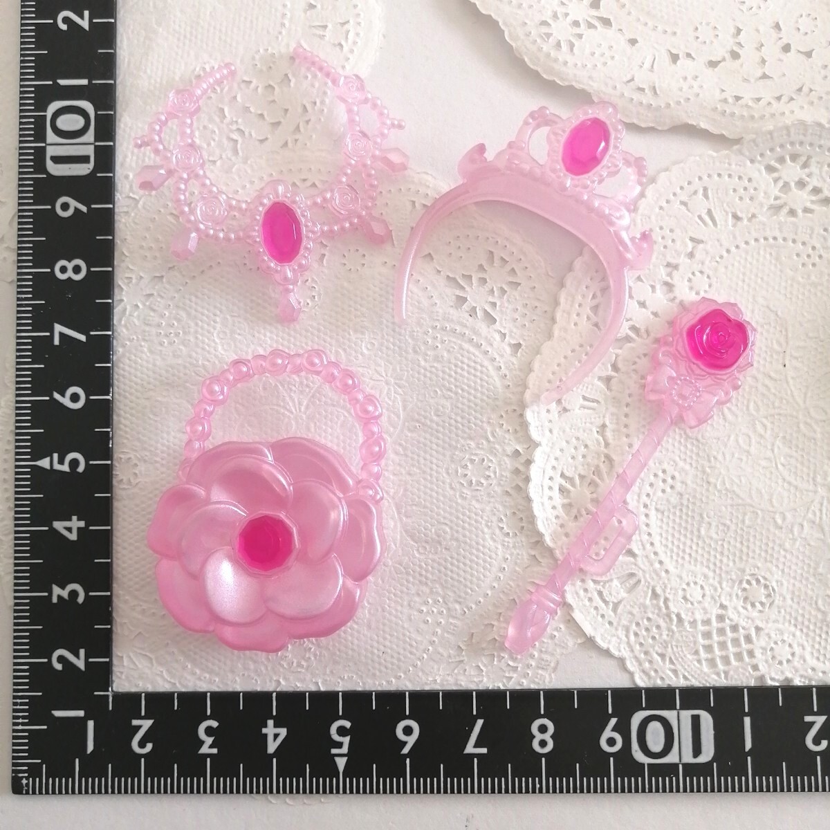 - 4r1126 5r1026 ドール用 ジェニー リカちゃん プリンセス ステッキ バッグ ティアラ ネックレス セット クリアピンク 1/6ドール プリンセス