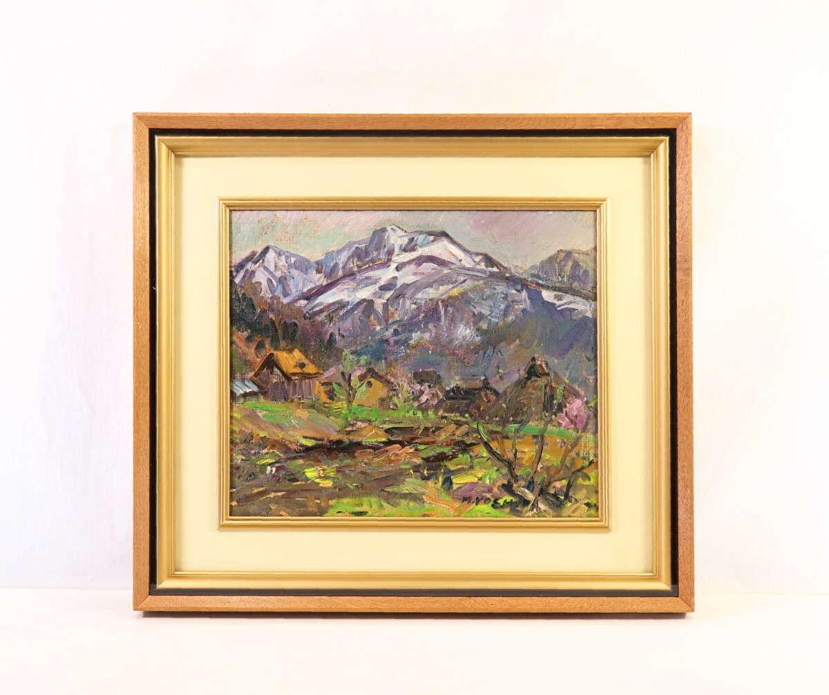 - 真作 吉田民尚 油彩「信濃早春」画寸 F8 福岡県出身 創元会初代理事長 坂本繁二郎 倉員辰雄に師事 日本列島を野宿袋を担ぎ描き続けた 10017