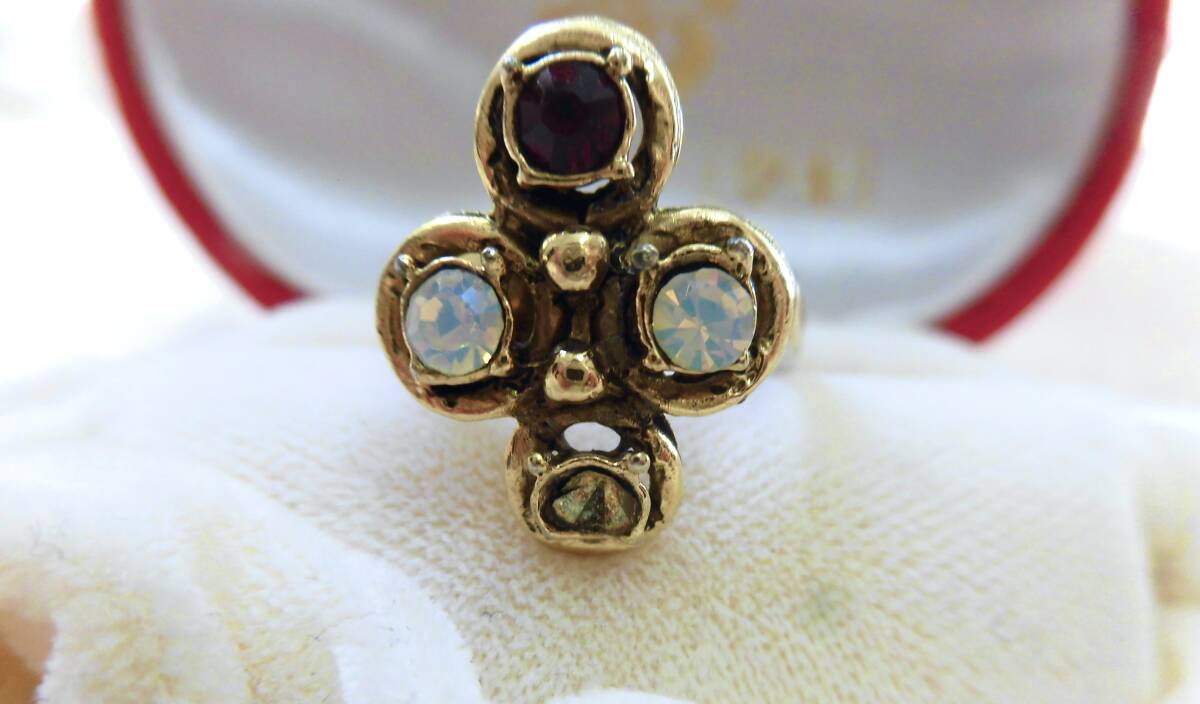- ●リング 指輪* クロス十字架 *4粒カラーストーン/ ヴィンテージデザイン/サイズ13号