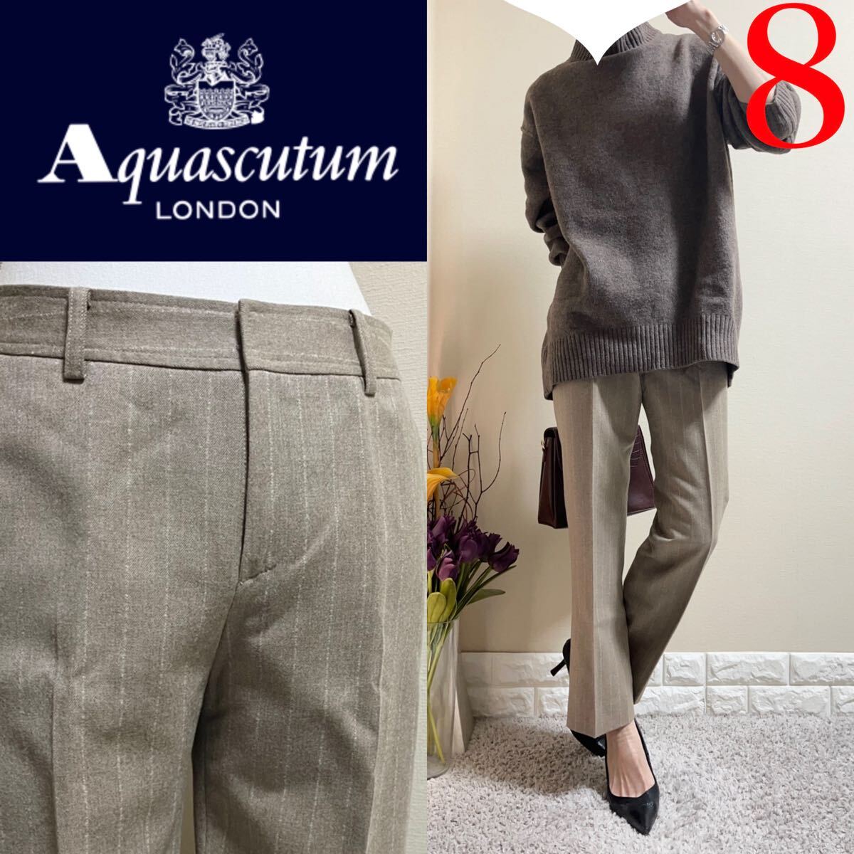 - 美品!AQUASCUTUM アクアスキュータム ピンストライプ 暖か ウール セミワイドストレート パンツ 淡いブラウン ベージュライン L 8