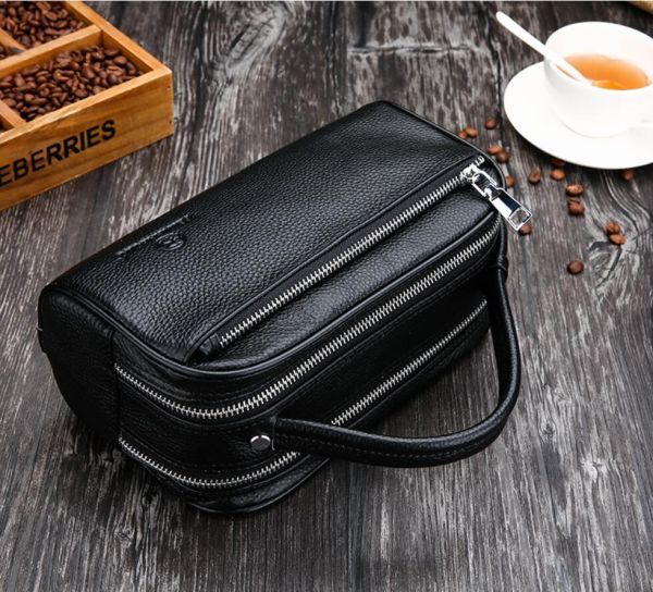 - 人気推薦 / セカンドバッグ メンズ セカンドバック クラッチバッグ 本革 レザー ボックス型 ダブルファスナー 長財布 / ブラック