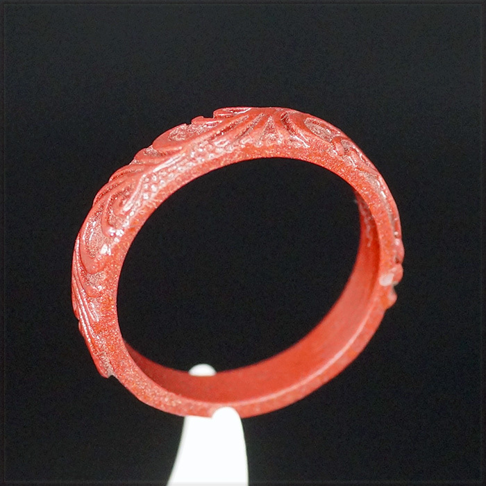- [RING] Natural Red Stone Cinnabar 幸運 健康 風水 赤色 天然石 鳥の羽根 植物 彫刻 デザイン 賢者の石 辰砂 リング 24号