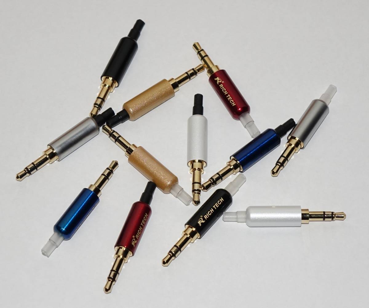 > 金属ボディのΦ3.5mmステレオミニプラグ テイル付き ブラック/ブルー/グレー/シルバー/ホワイト/レッド/オレンジから選択 黒青灰銀白赤橙