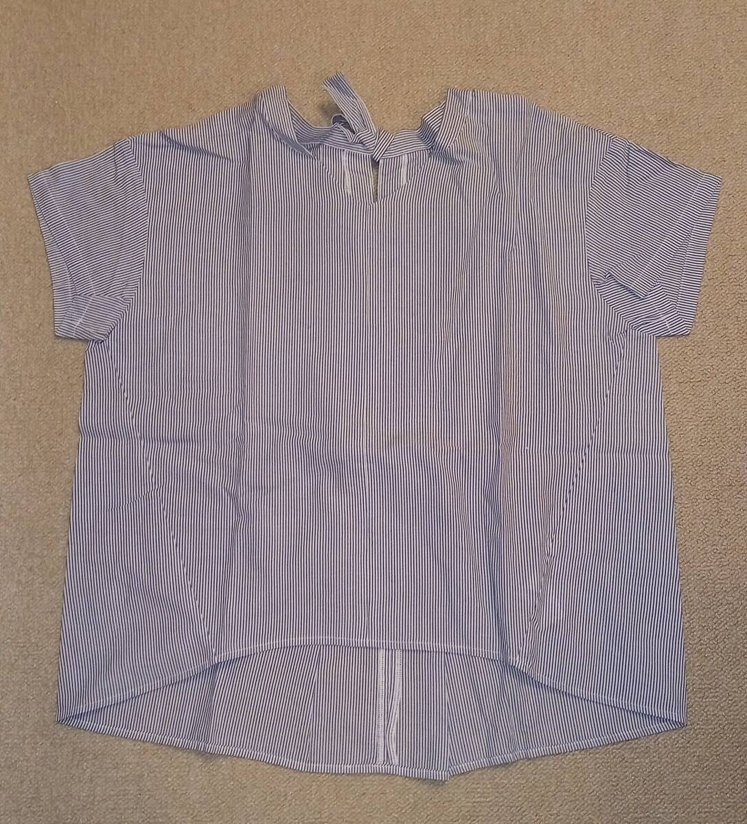 - ☆ レディース ブラウス ノースリーブ フリーサイズ 白青ストライプ (古着)