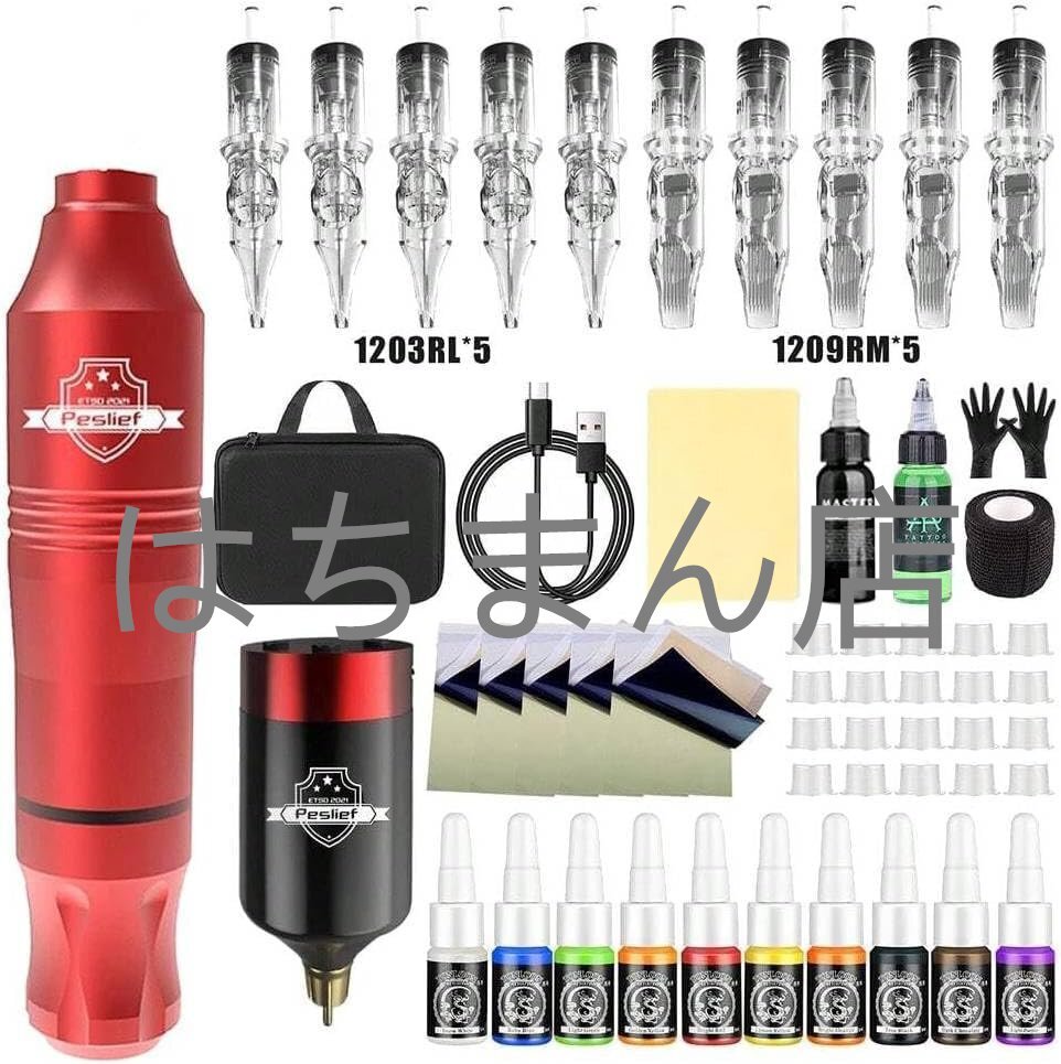 - ワイヤレスタトゥーマシン 、タトゥーマシン、タトゥーニードルカートリッジ 10色のタトゥー顔料付き タトゥー用品のフルセット(ブラック)