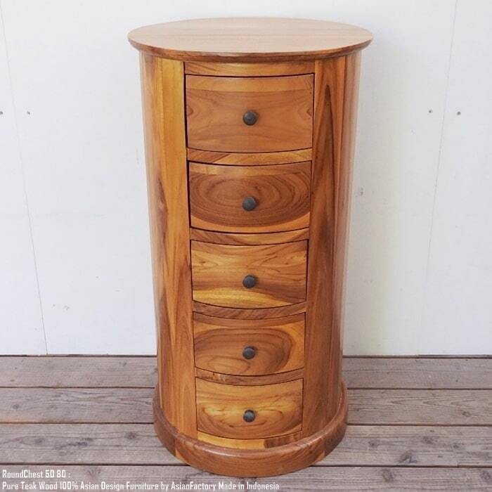 - オールドチーク無垢材 5段チェスト 80cm 箪笥 ナチュラルラスティック 収納 薬箪笥 アンティーク調 電話台 円柱 円筒 丸形 アジアン家具