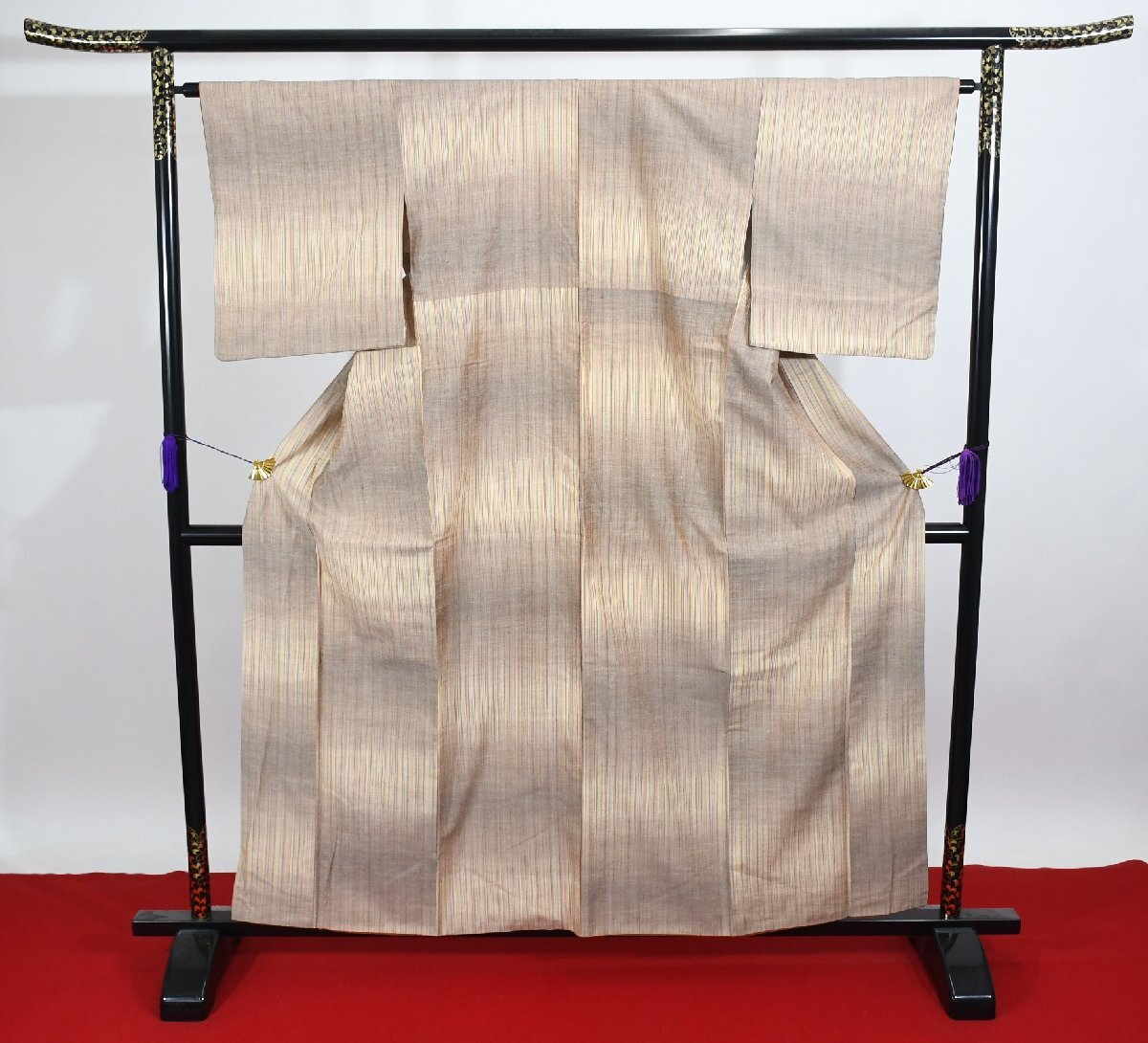 > 紬 つむぎ 草木染 縞 身丈153cm 裄丈63.5cm ★着物 pb-3115 桜庭呉服店
