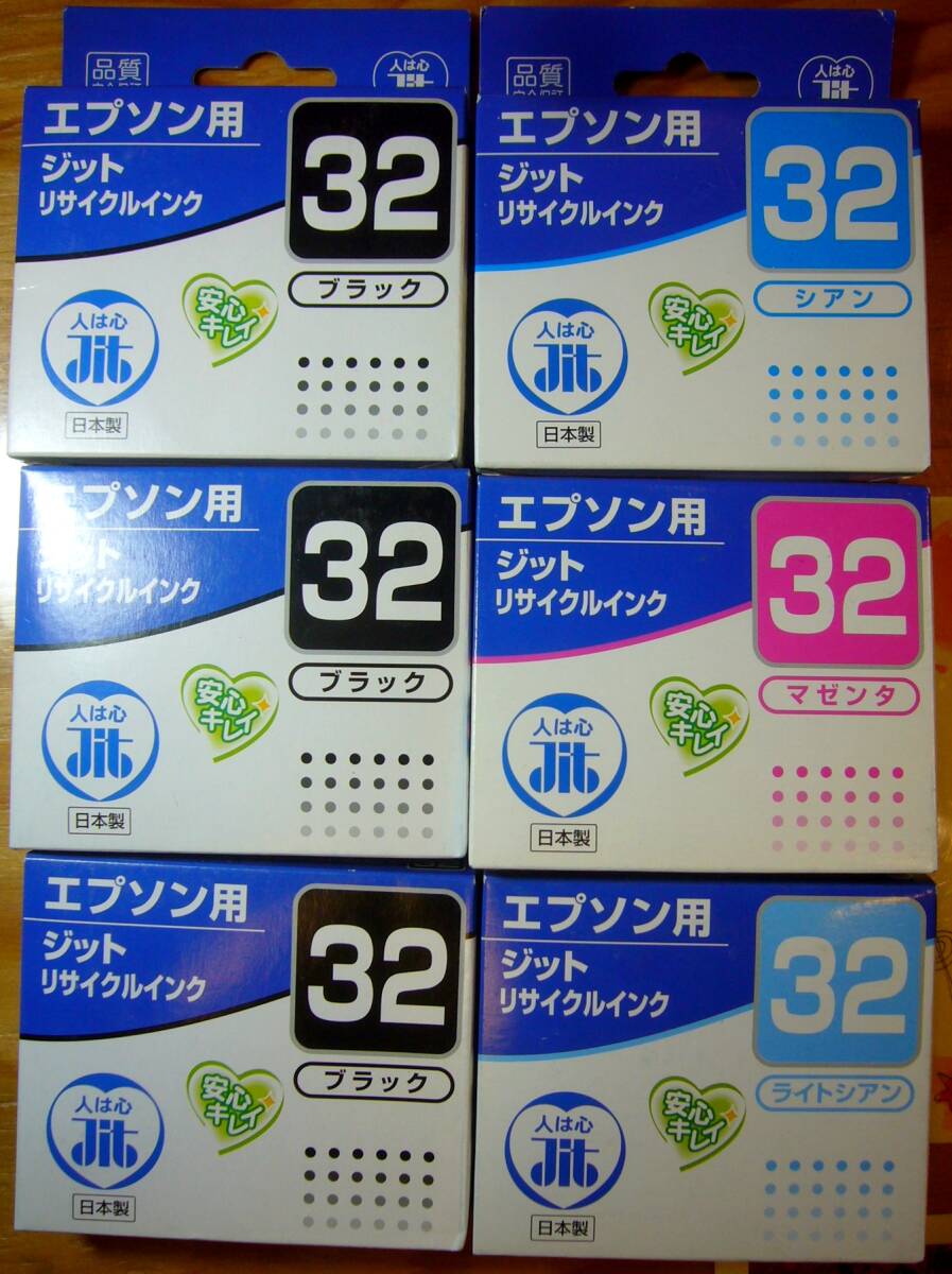 - エプソン インク 32 互換 6本セット(ブラックICBK32、シアンICC32、ライトシアンICLC32、マゼンダICM32)【推奨使用期限切れ】