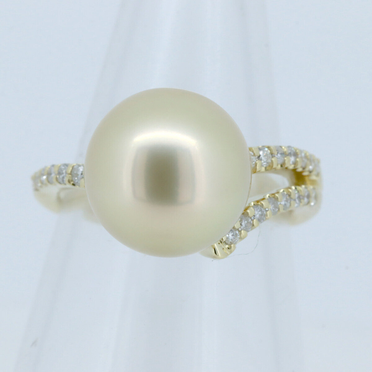 - オーロラムーンレインボー パール ダイヤモンド リング 指輪 12.3ミリ 0.25ct 14号 K18YG(18金 イエローゴールド) 質屋出品