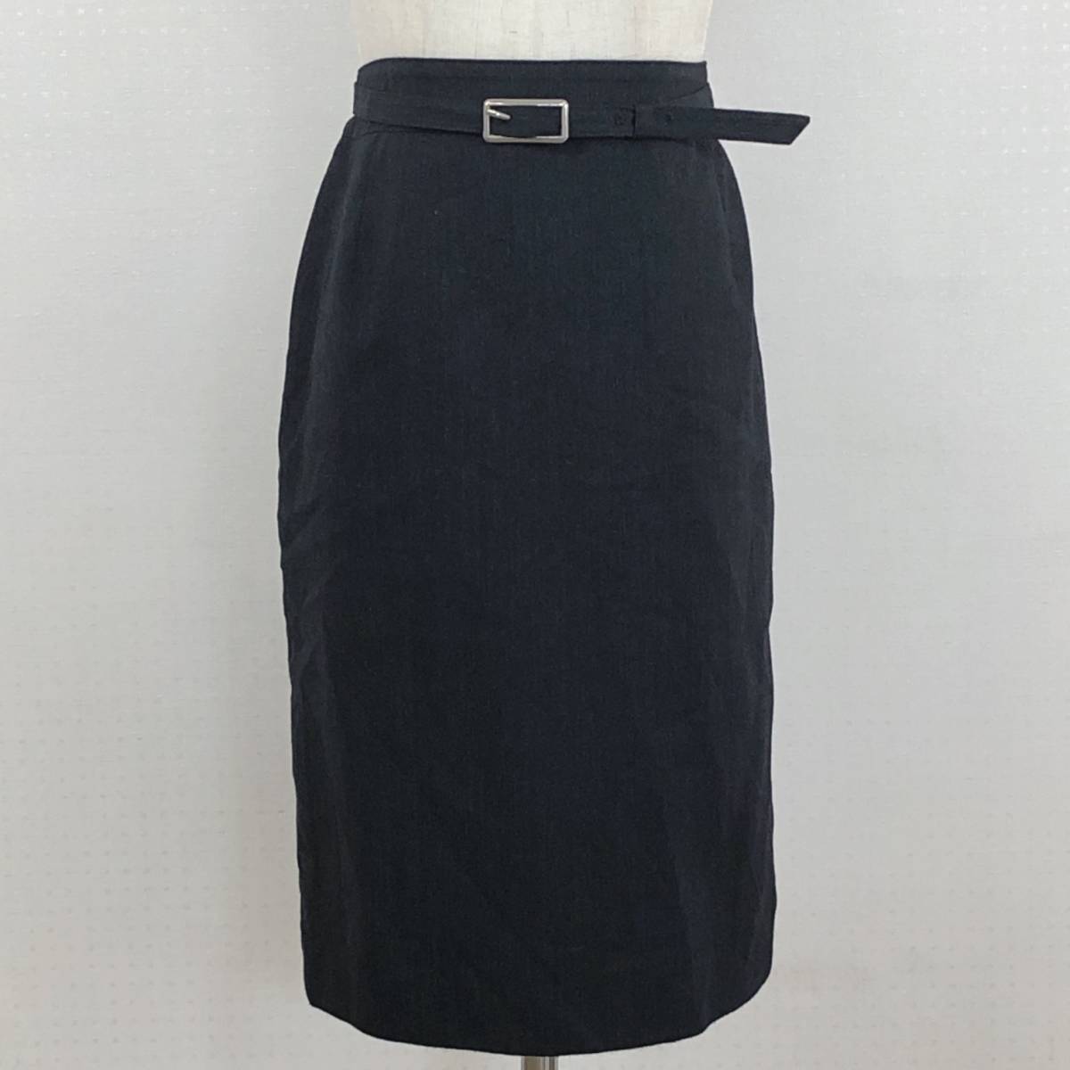 > YAS1002 C.D.S BASIC シーディーエスベーシック レディース ボトムス タイトスカート 膝丈 ベルト付 Lサイズ ブラック 黒 ウール100% 春秋