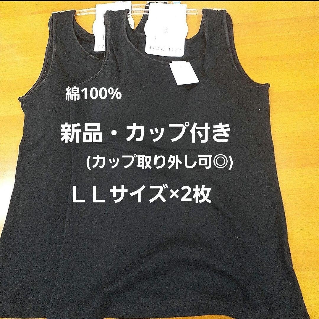 - ☆新品綿100%LLサイズレディースカップ付きタンクトップ(カップ取り外し可)黒2枚