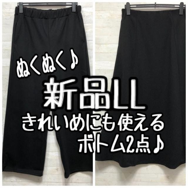 - 新品☆LL黒系無地ぬくぬくボトム♪ストレートパンツ&フレアスカート〇A843