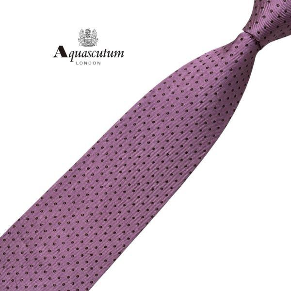 > ★ドット柄★高級ネクタイ★Aquascutum★ピンク系 パターン柄 イタリア製 シルク ネコポス可 アクアスキュータム USED プレス済み