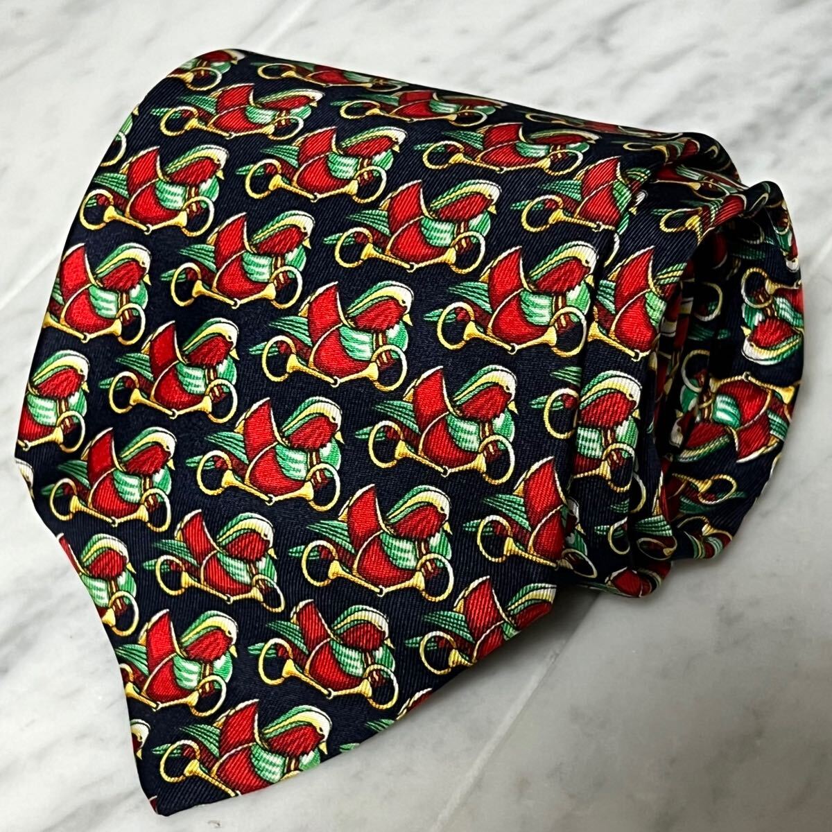 - 【美品】 999円~ LANCEL ネクタイ ネイビー 鳥 マルチカラー (B11)