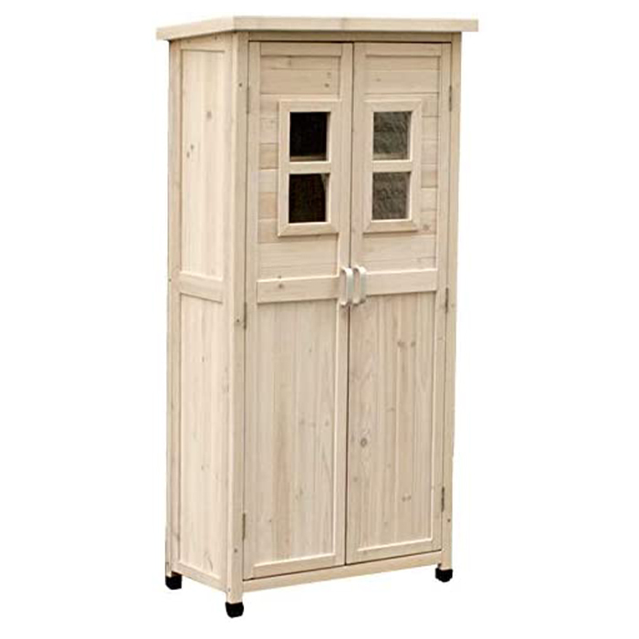 - 収納庫 両開き ハイタイプ 薄型 奥行40 天然木 小型 小屋 倉庫 ベランダ 北欧 レトロ おしゃれ かわいい 白 ホワイト MSMIK-0077WH