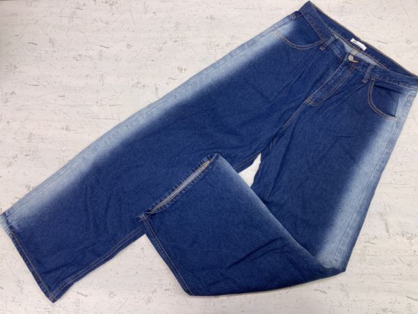 - JaVa ジャバ サイドフェード加工 ワイド ストレート デニム パンツ ジーンズ ボトムス レディース ジップフライ グラデーション L 青