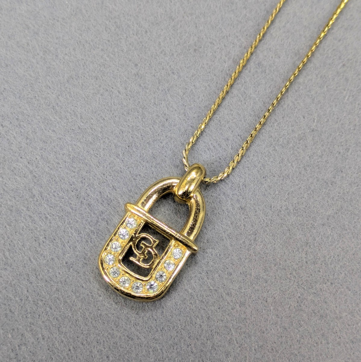- Christian Dior クリスチャン ディオール ヴィンテージ ネックレス ゴールドカラー ラインストーン アクセサリー CDロゴ 鍵 南京錠