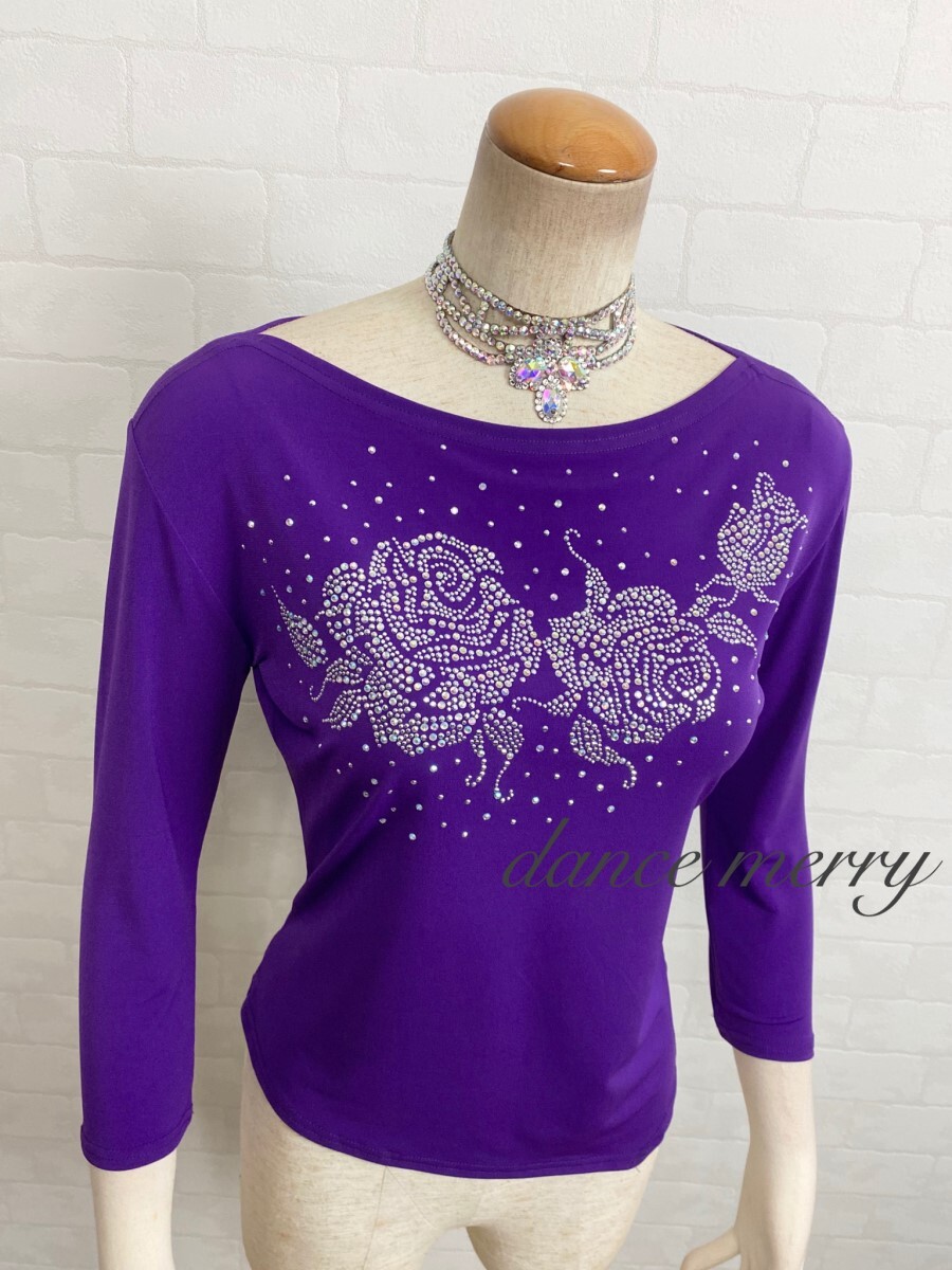 > ★送料無料★【MERRY】 新品 限定Lサイズ 社交ダンス トップス 紫 3445 キラキラ ゆったり シンプル レッスン ラテン ワルツ 普段着