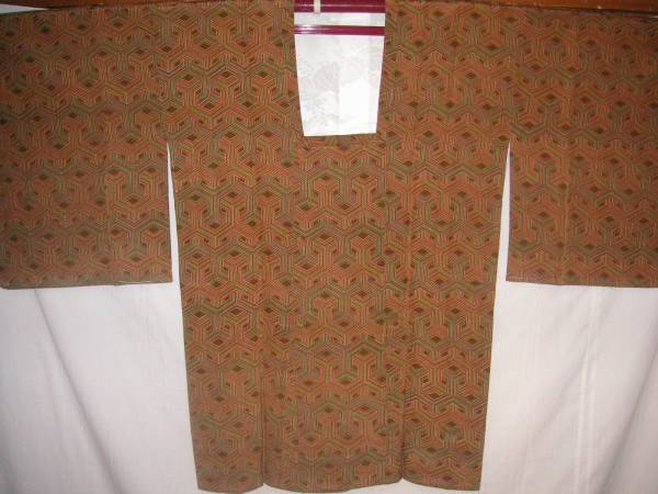- 道行コート 茶色地 正絹 粋な柄 新品 亀甲