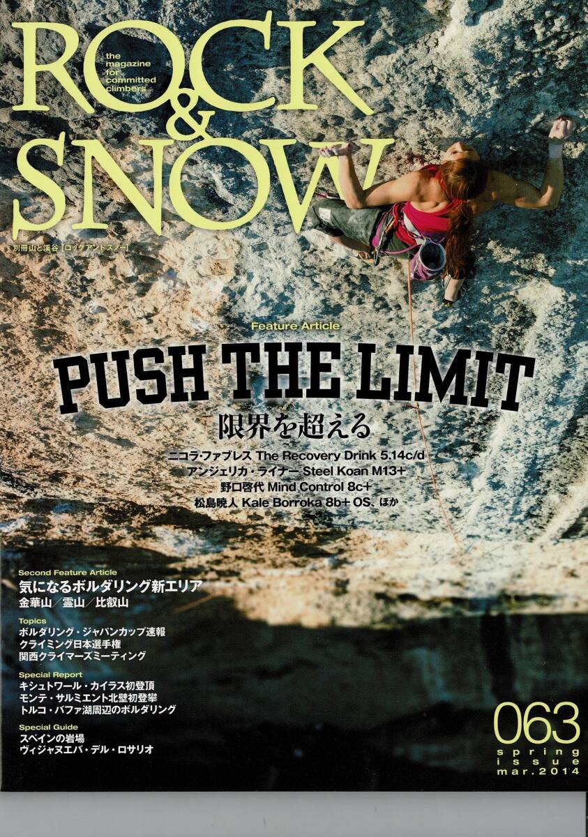 - □「ROCK & SNOW 2014 春号 No.63 Spring issue, March. 2014 (別冊 山と溪谷)」ムック 2014/3/6 山と渓谷社 128p RE324SW14