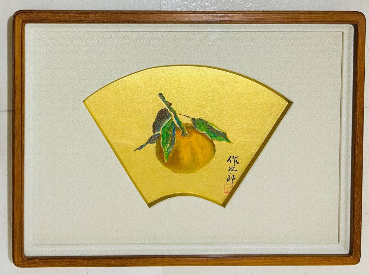 - 【 真作保証・送料無料 】 大久保作次郎 「みかん」 油彩画 扇面