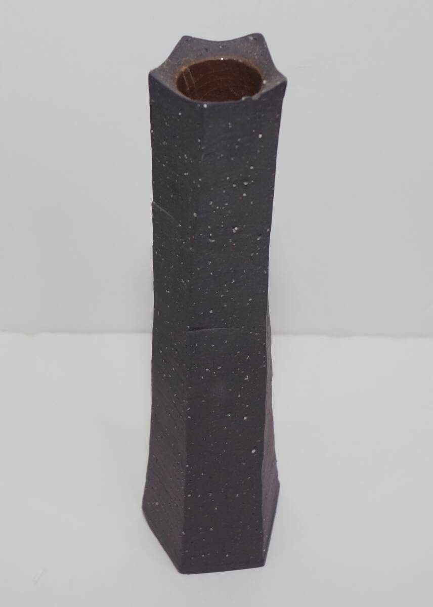 - 信楽焼 黒焼締め 面取 花入 作家物
