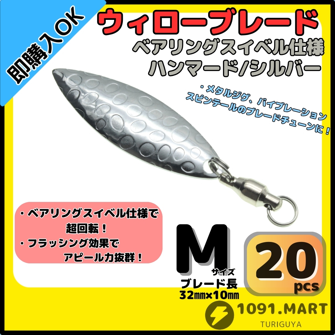 - 【送料150円】ウィローブレード ハンマード/シルバーMサイズ20個セットボールベアリングスイベル付きスピンテールブレードブレードチューン