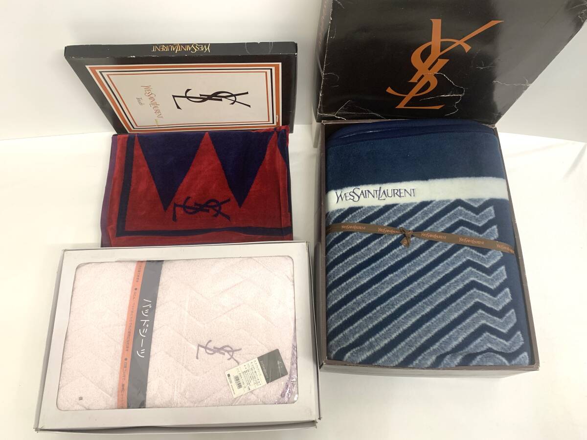 > /〇738【Yves Saint Laurent 3点まとめ】未使用 イヴ サンローラン ブランケット140×200/パットシーツ/バスタオル 寝具