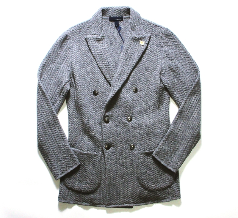 - 新品 ラルディーニ LARDINI ダブル ウール ジャガード ニット ジャケット XS グレー 秋冬