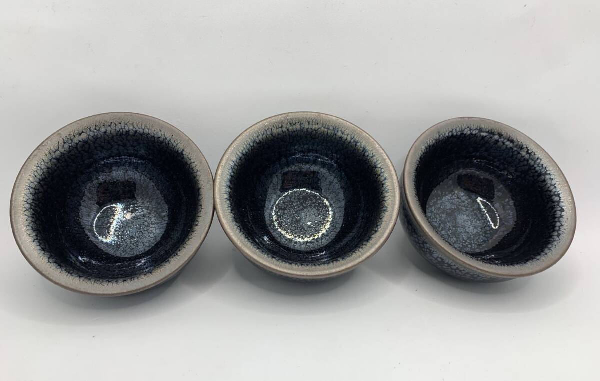 - 中古未使用 鉄胎銀油滴 お茶杯3個セット