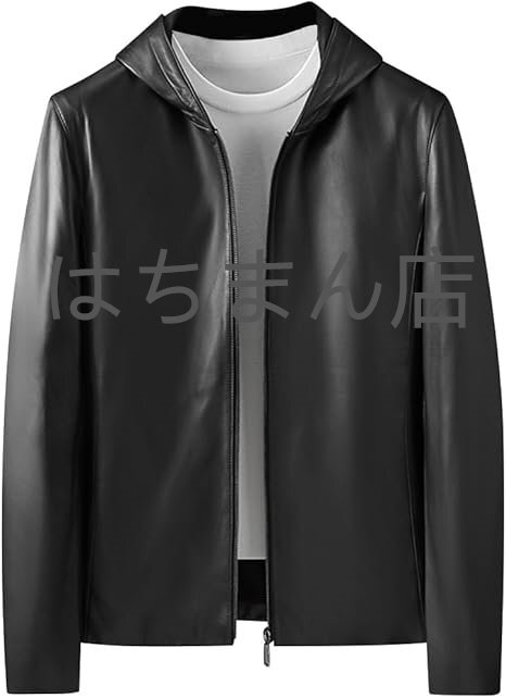 - レザーパーカー メンズ シープスキン レザージャケット フード付き ジャケット 革ジャン 羊皮 本革 ジップ ジャンパー 黒 M-4XL