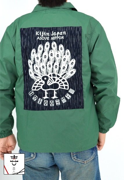 - 和生地切貼りマージャンパー◆喜人 グリーンMサイズ KJ-42803 和柄 和風 麻雀 きじん ブルゾン