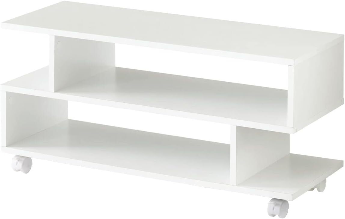 - 【新品】 ぼん家具 テレビ台 32型 テレビボード 収納付き S字 木目調 AVボード キャスター付き 幅80cm ホワイト